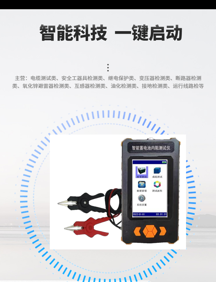 SDNZ-02智能蓄電池內(nèi)阻測試儀采用彩色電阻觸摸屏,儀表操作通過手指或者觸摸筆觸摸方式操作,靈活方便;是快速準(zhǔn)確測量電池運(yùn)行狀態(tài)參數(shù)的數(shù)字存儲式多功能便攜式測試儀。該儀表可以在線檢測單體電池的電壓和內(nèi)阻或電導(dǎo),將檢測到的數(shù)據(jù)進(jìn)行存儲和處理,對電池故障進(jìn)行報(bào)警,精確有效地判別單體電池的優(yōu)良狀況。儀表對測試數(shù)據(jù)進(jìn)行保存,查詢、刪除和導(dǎo)出。上位機(jī)軟件對測試的數(shù)據(jù),通過各種圖表對數(shù)據(jù)進(jìn)行分析和顯示,自動(dòng)生成電池的檢測報(bào)告。